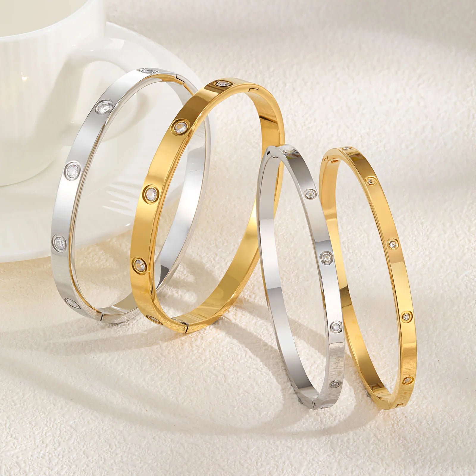 Verleihe deinem Look einen Hauch von Eleganz mit diesem luxuriösen Armreif mit funkelnden Cubic-Zirkonia-Steinen. Gefertigt aus hochwertigem Edelstahl, überzeugt dieses Schmuckstück durch seine edle Optik, Langlebigkeit und seinen angenehmen Tragekomfort.