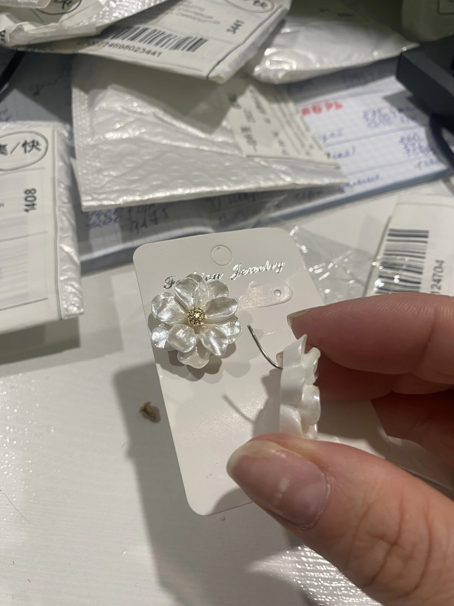 ✨ Boho-Blumen-Ohrstecker – Weiße Acrylblüten ✨